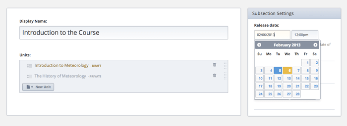 Lorsque vous avez terminé une section, choisissez quand vous souhaitez qu'elle apparaisse en ligne et PREPROD-S-UNR s'occupe du reste. Construisez votre cours de manière progressive.